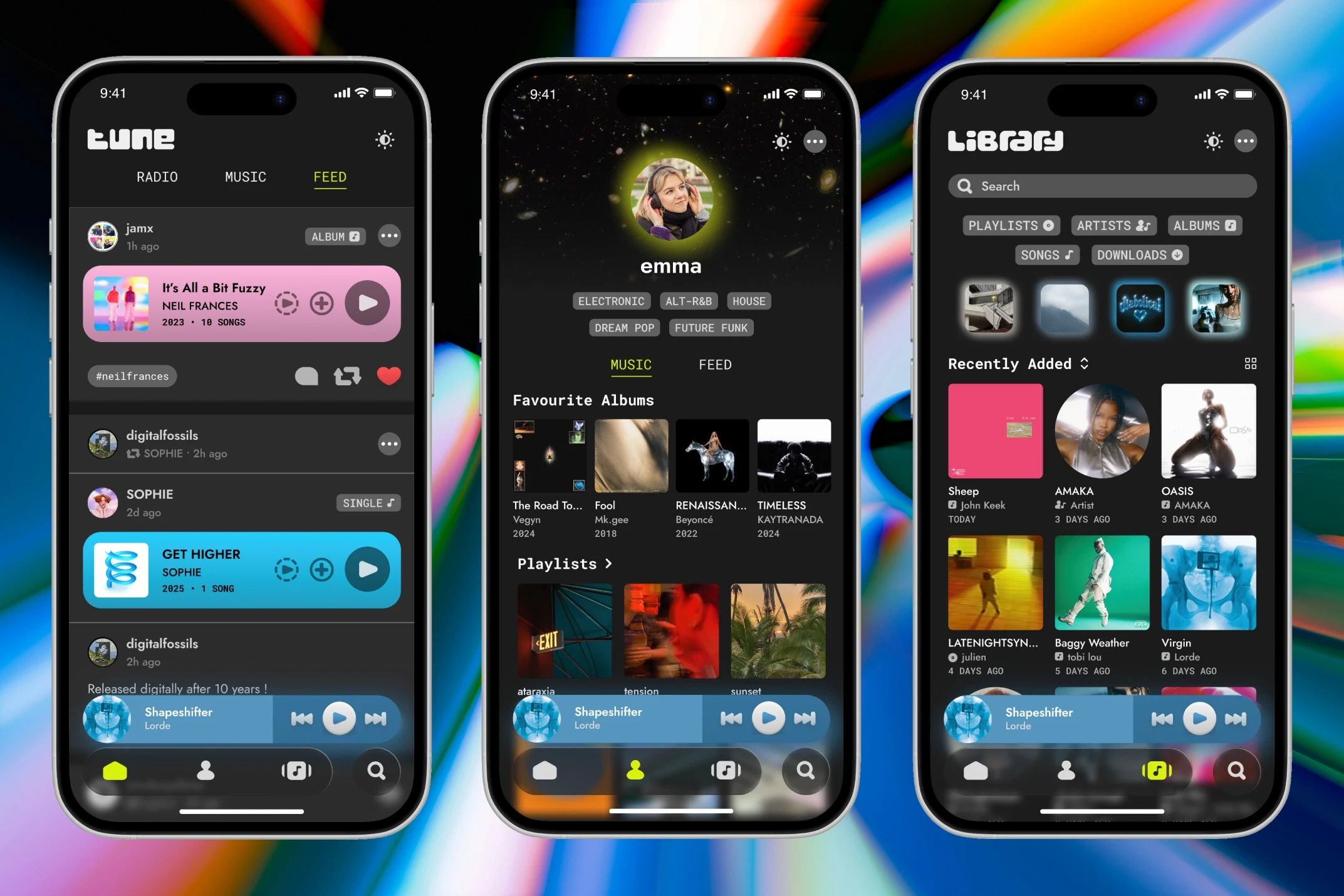 Every design decision, from the use of glass and neumorphism to the easily accessible community feed in the homepage, was made to directly address our core pain points, bringing together expression, community, and music discovery in one cohesive platform.